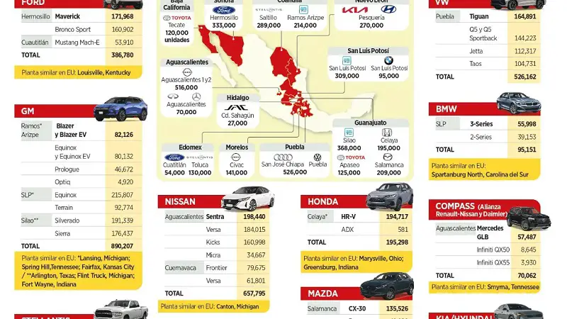 The 4 million units were produced in plants located in 15 cities across the country, where the United States was the main trading partner, capturing 80% of car shipments manufactured in the country.